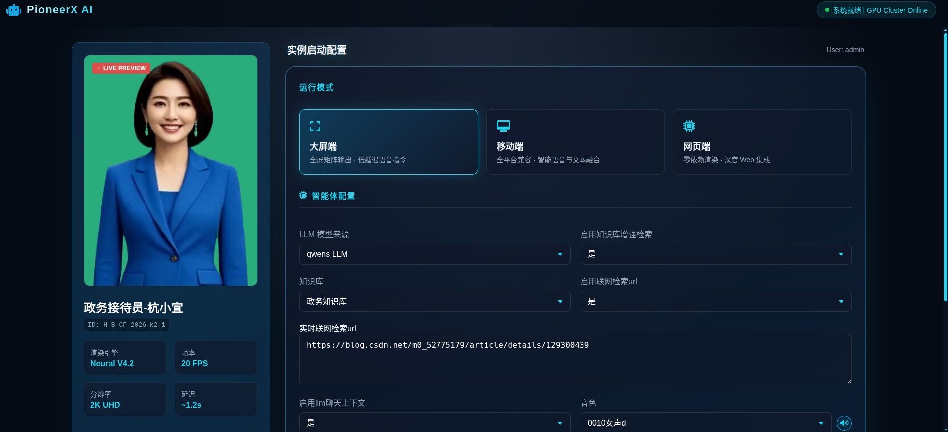 延迟 < 2s优化数字人引擎算法,降低硬件算力要求,提高CPU和GPU的处理效率,输出帧率达到60fps