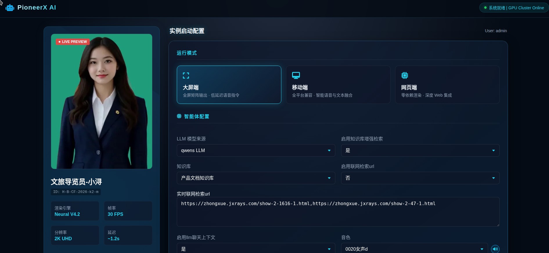 | 口型渲染与驱动 | 实时口型、表情、肢体驱动;支持大屏、移动端、Web输出 |