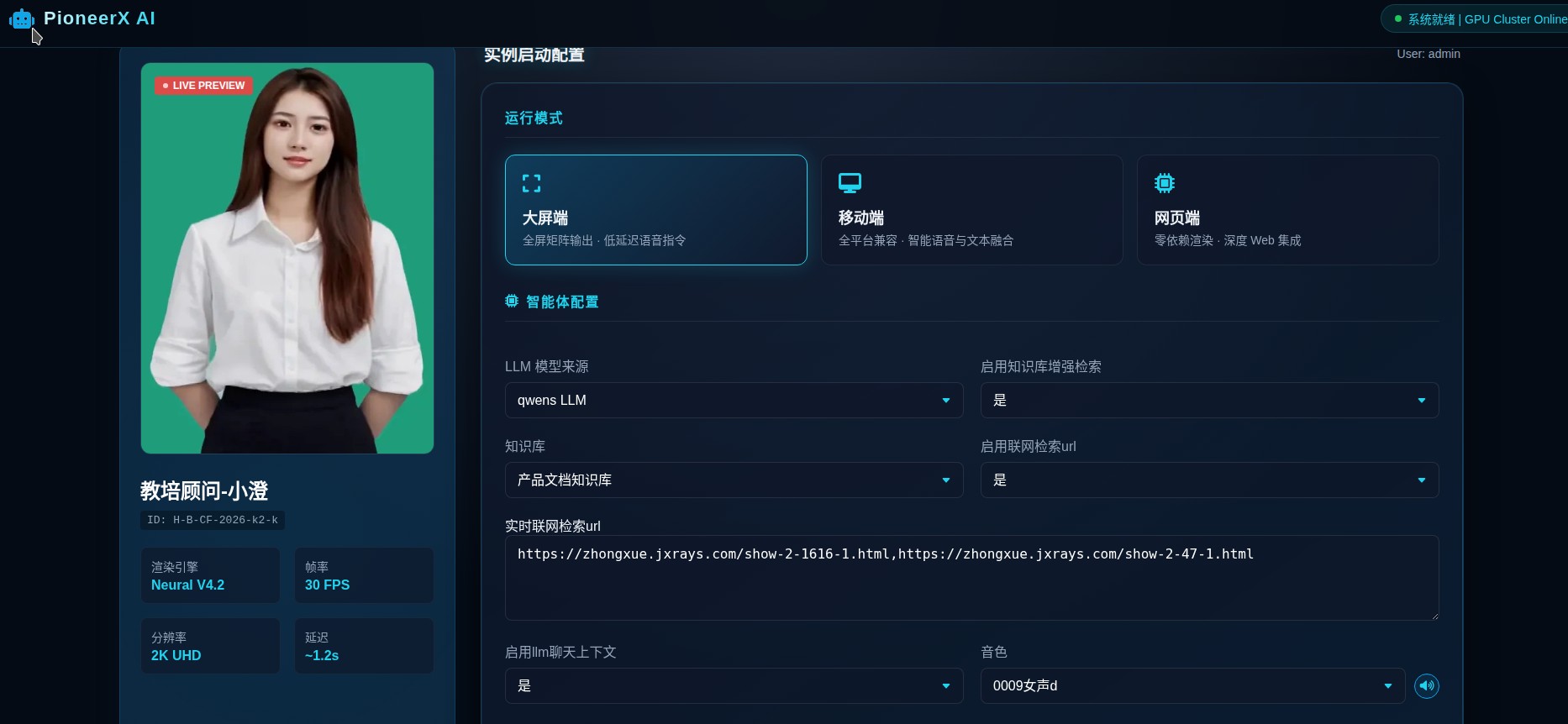 产品具备轻量化部署特性,可适配消费级显卡,大幅降低落地成本与技术门槛,同时采用开放兼容架构,支持后续无缝接入更先进的模型与算法能力,实现数字人形象、交互智能与表现力的持续迭代升级,为智能客服、政务宣讲、金融播报、虚拟主持等场景提供稳定、高效、安全的一站式数字人服务。